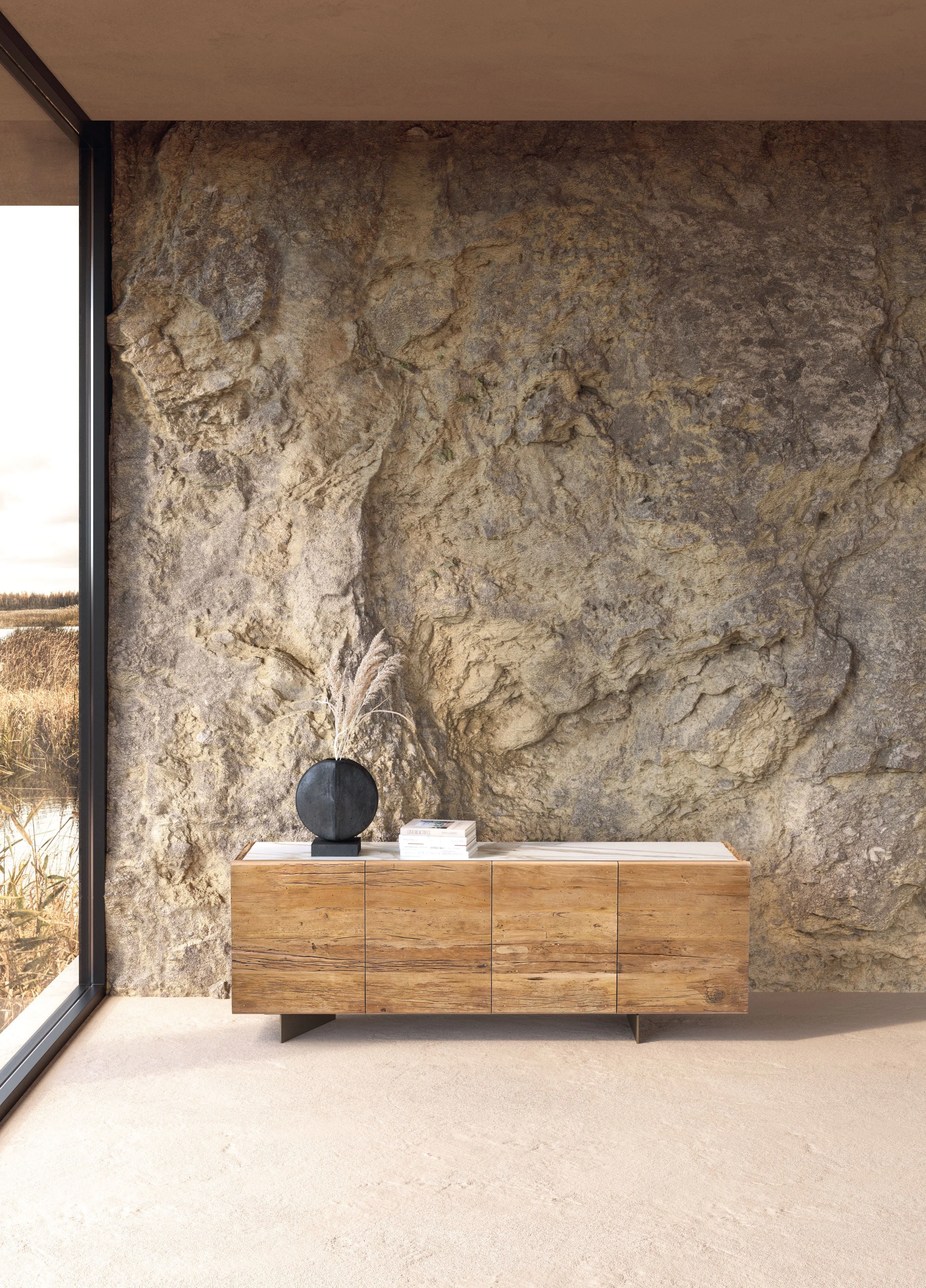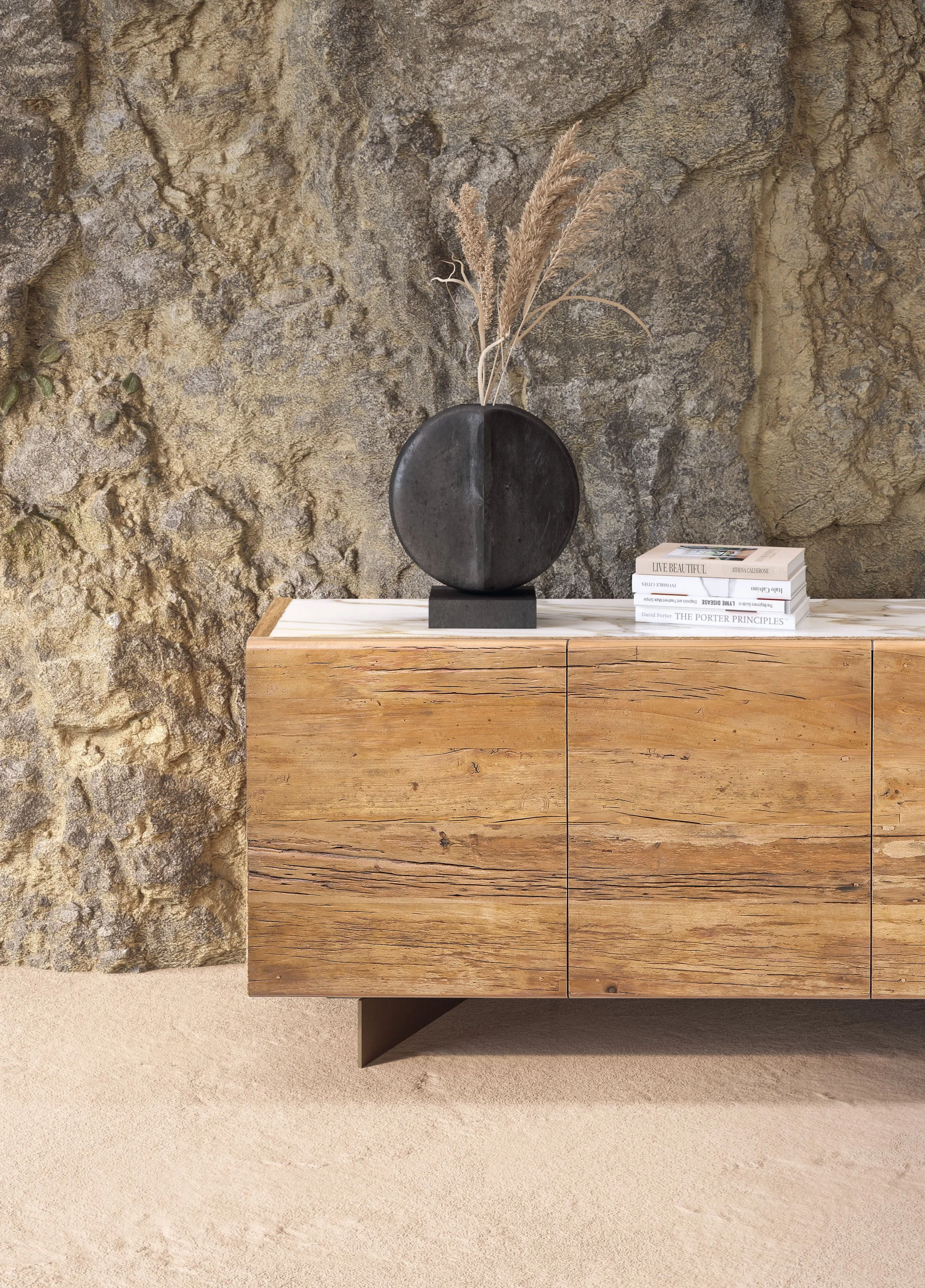 The Stanza sideboard is equipped with glass shelves to store your finest items.