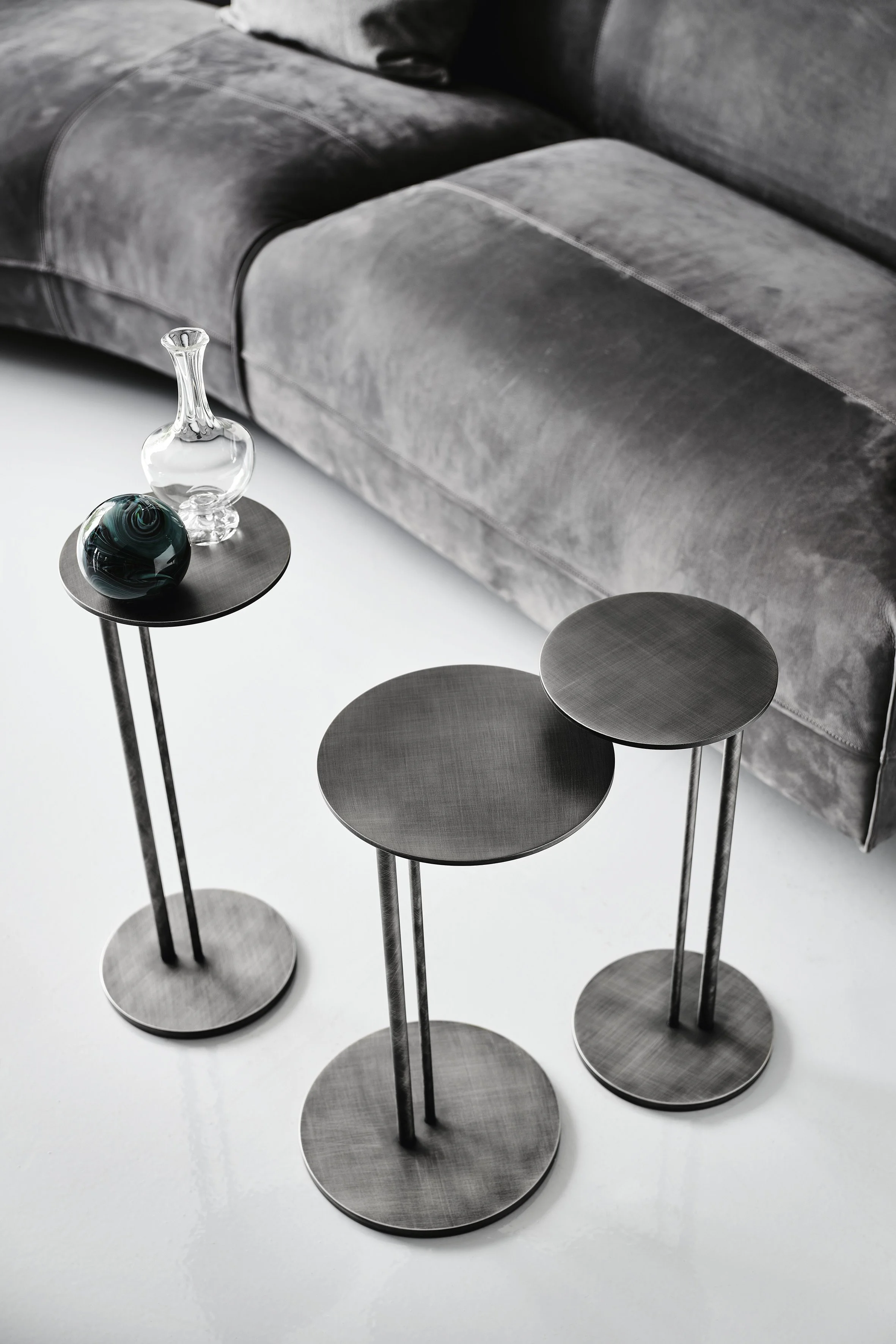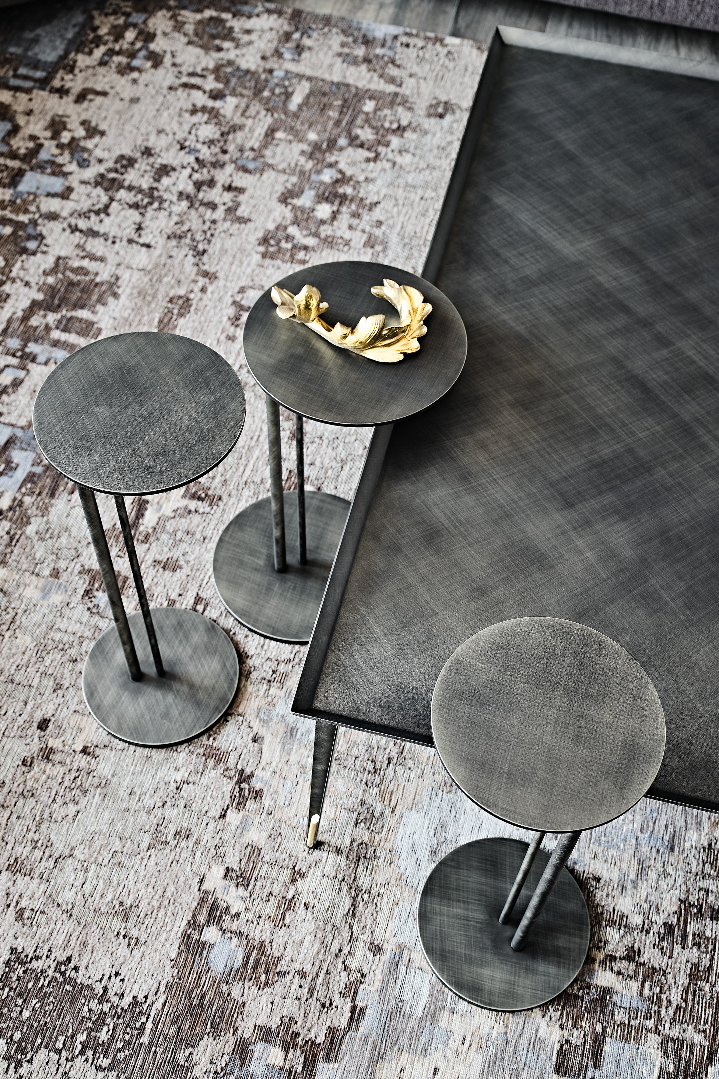 Base in titanium, bronze, graphite, or black lacquered steel.