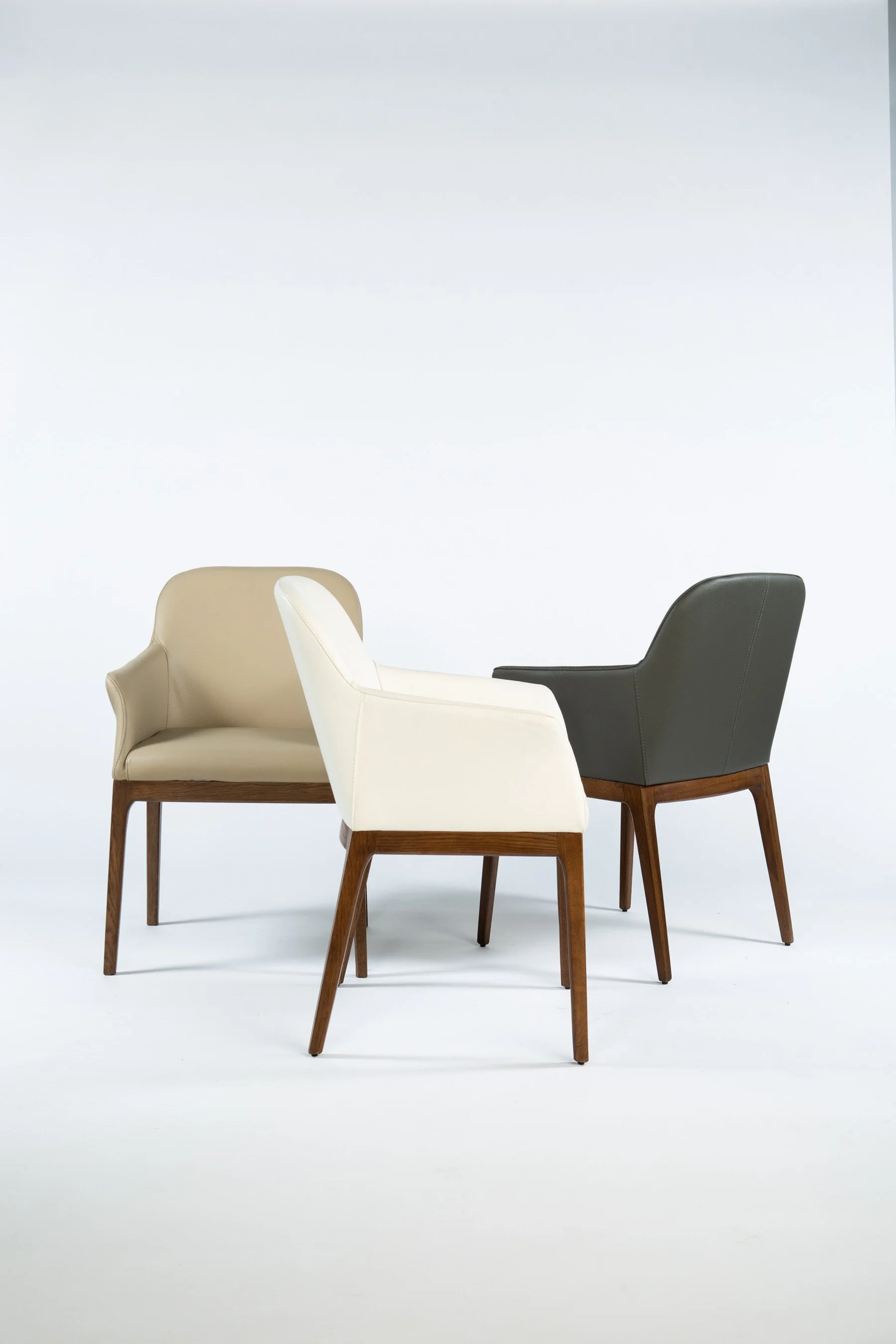KOKO ARMCHAIR Available in White, Charcoal, Black or Light Taupe leather.Walnut or Espresso wood legs.24.5” x 23” x 33” H