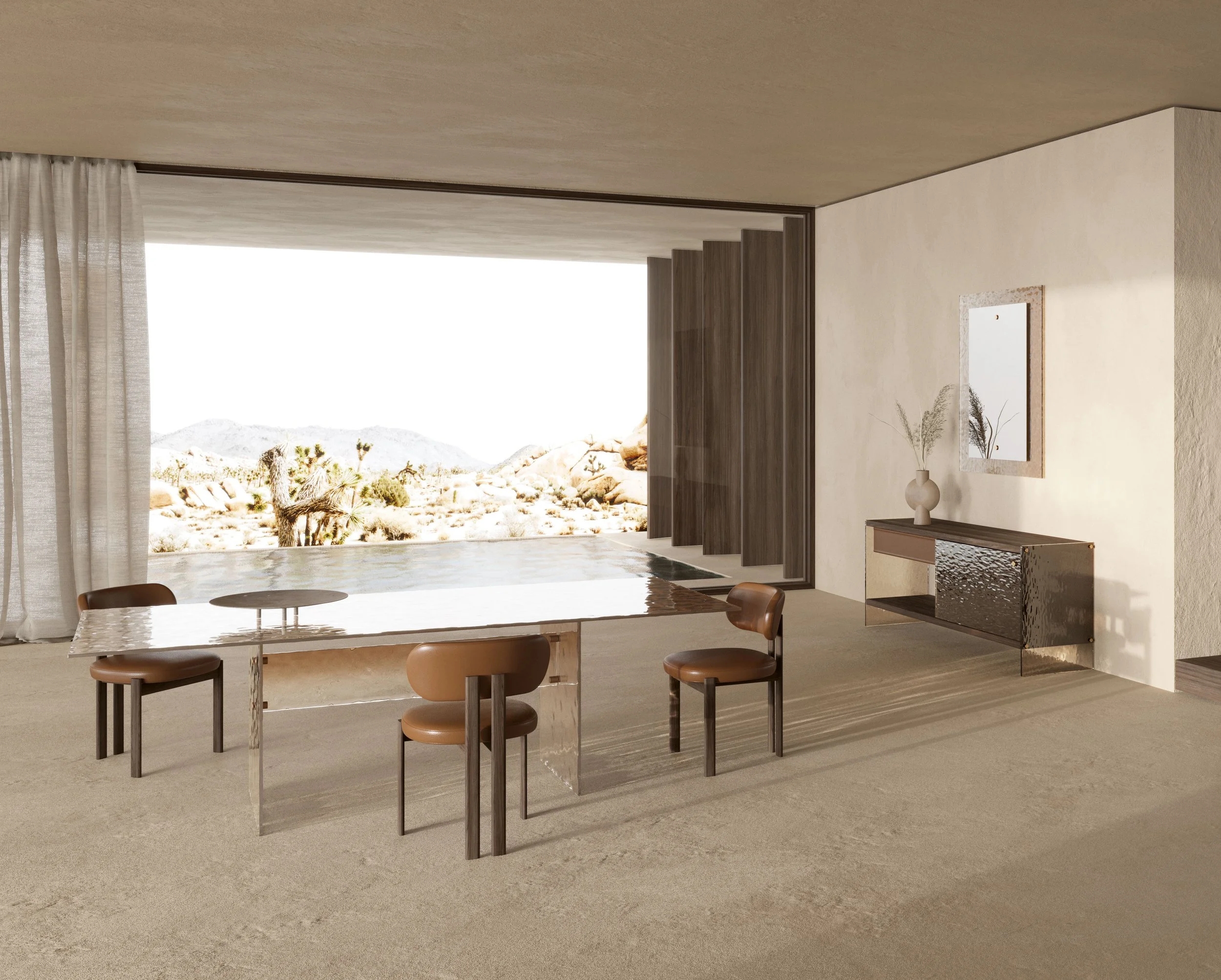 The HALO mirror is surrounded by a beautiful cast glass. Available round or rectangular.