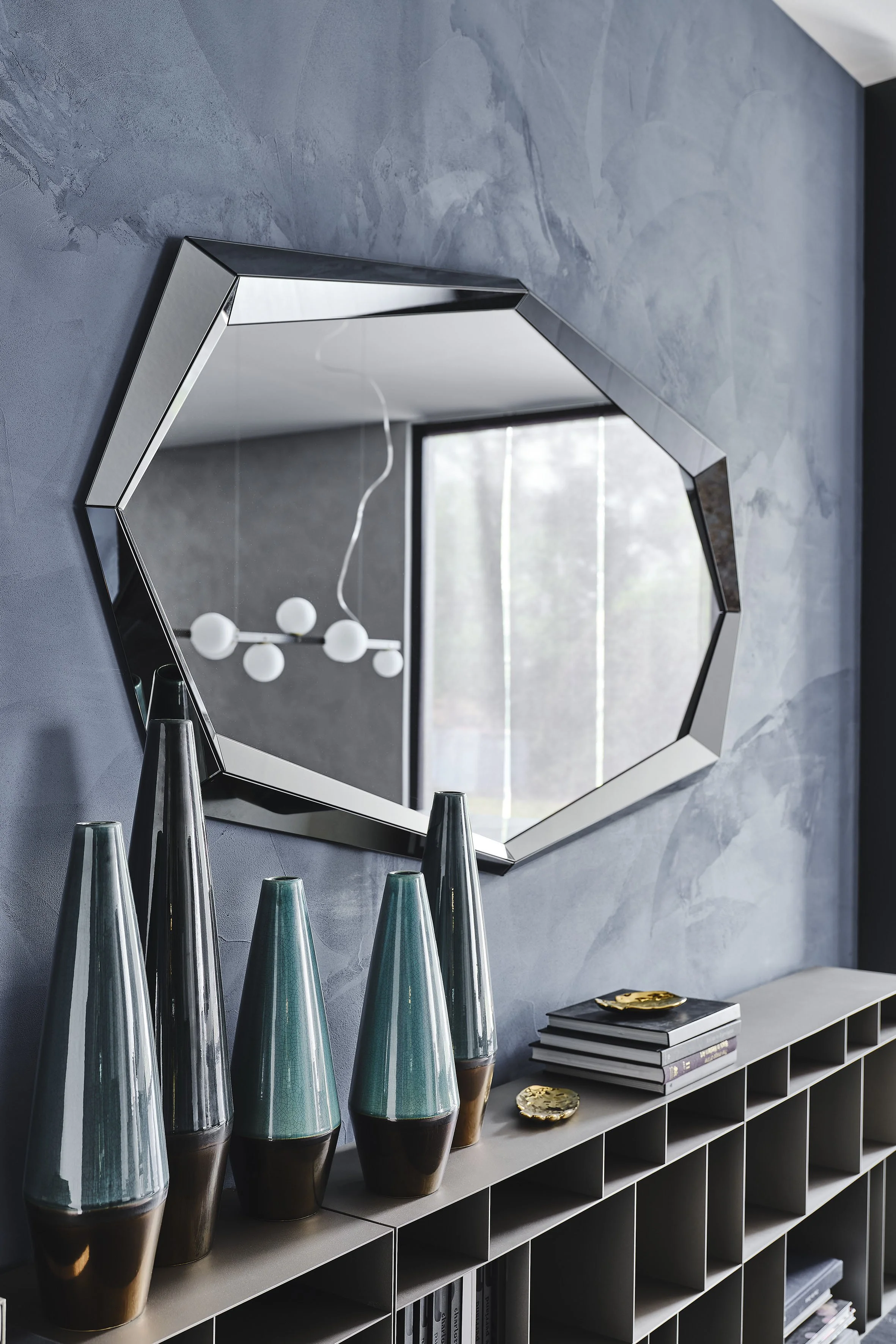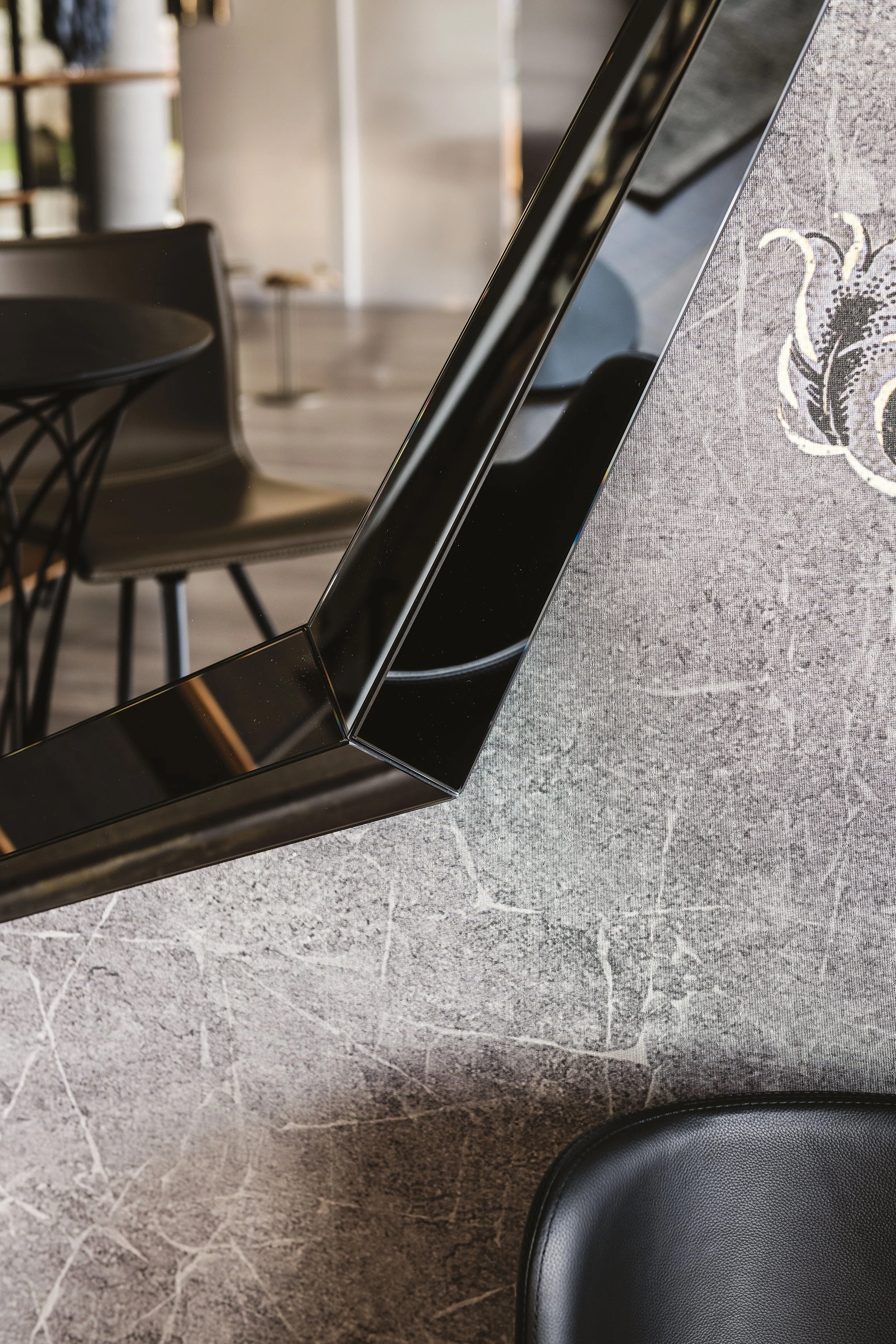 The VENUS mirror has a fully mirrored frame, creating a sharp cornered edge, and transforming it to a three dimensional piece.