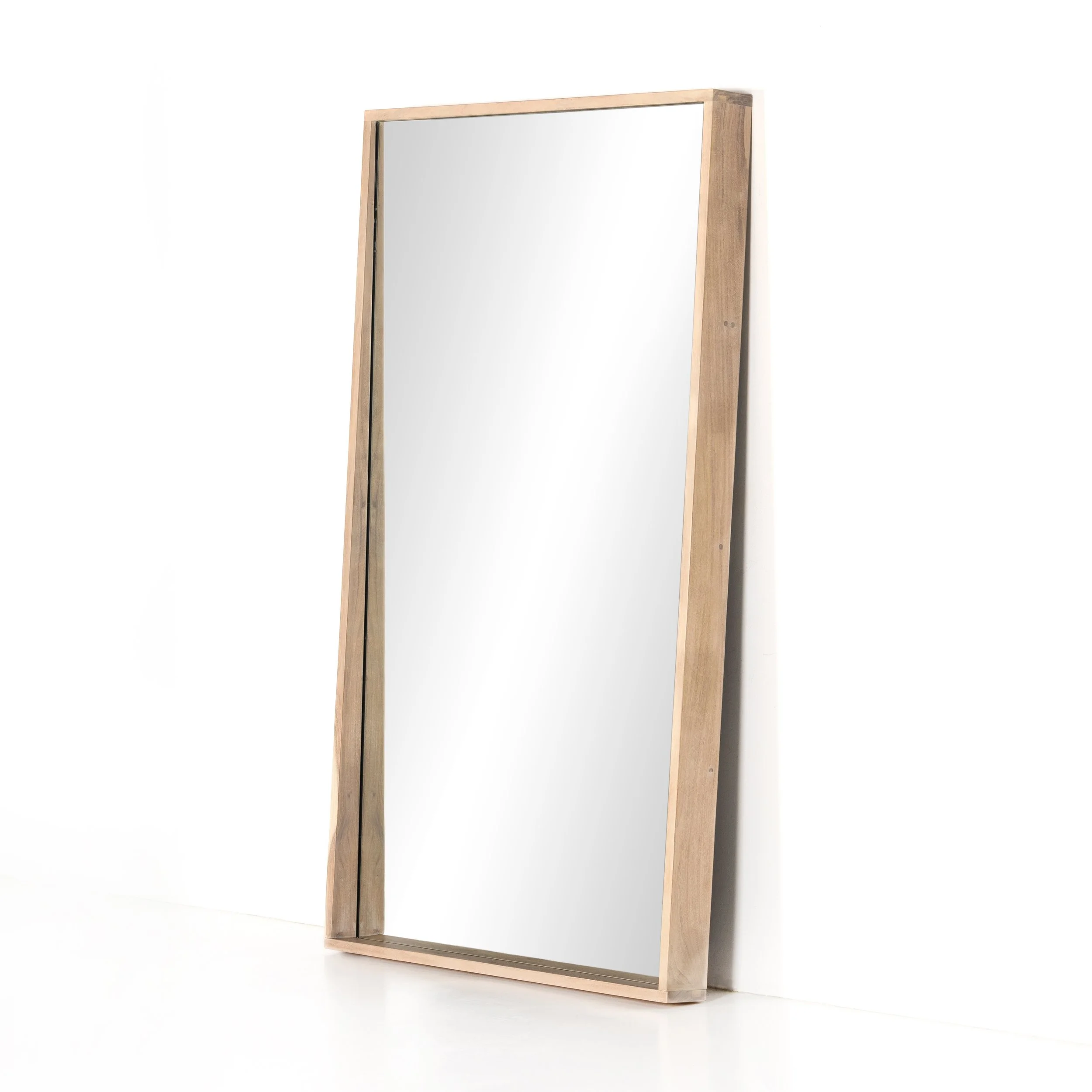 The Wallow Mirror is made up of a white-ash wood frame that is boxed framed, with a slight angle to keep the mirror perpendicular to the floor. It’s like they say — It’s all about the angles baby!