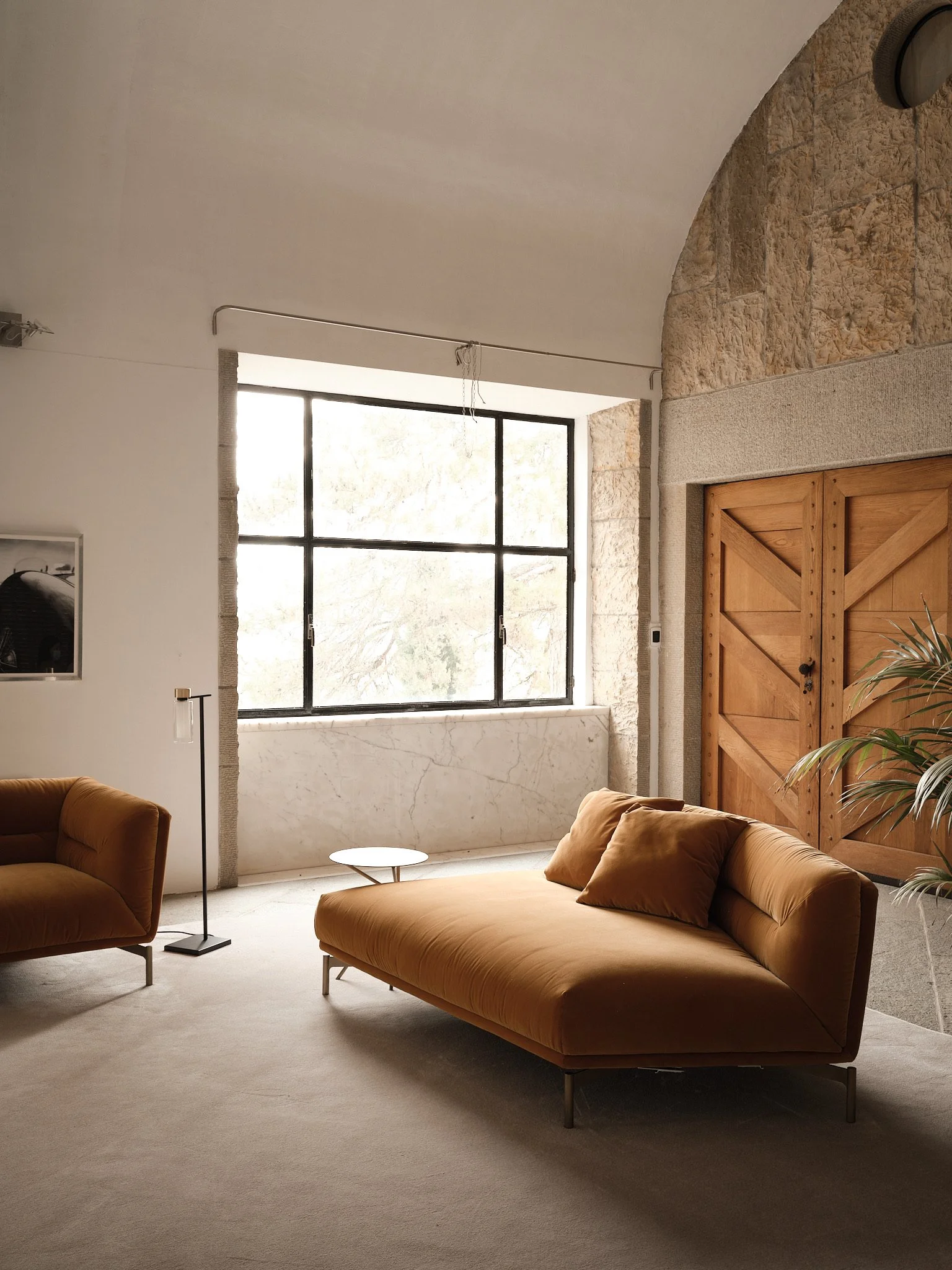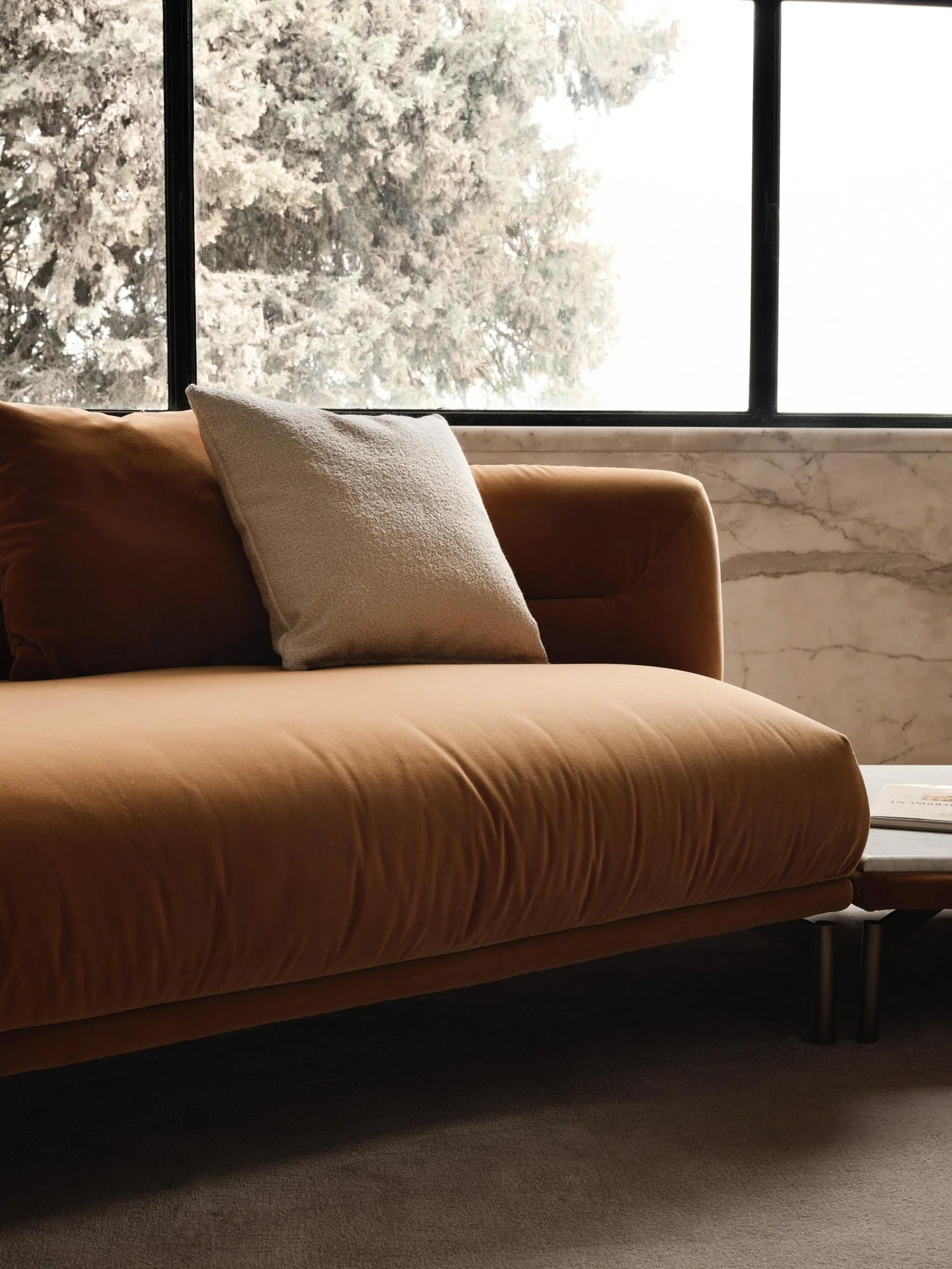 This modular sofa comes with seating options of different proportions, shapes, and fun lines. By carefully creating your space, and transforming your home, take a look at the wall formations — any angles that you might have that you’re unsure of what to do with? A sofa like the Hughes model is there for your needs. Available in many options of fabrics or leathers.
